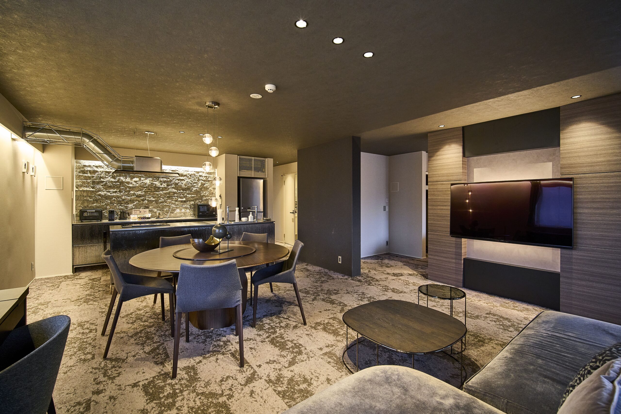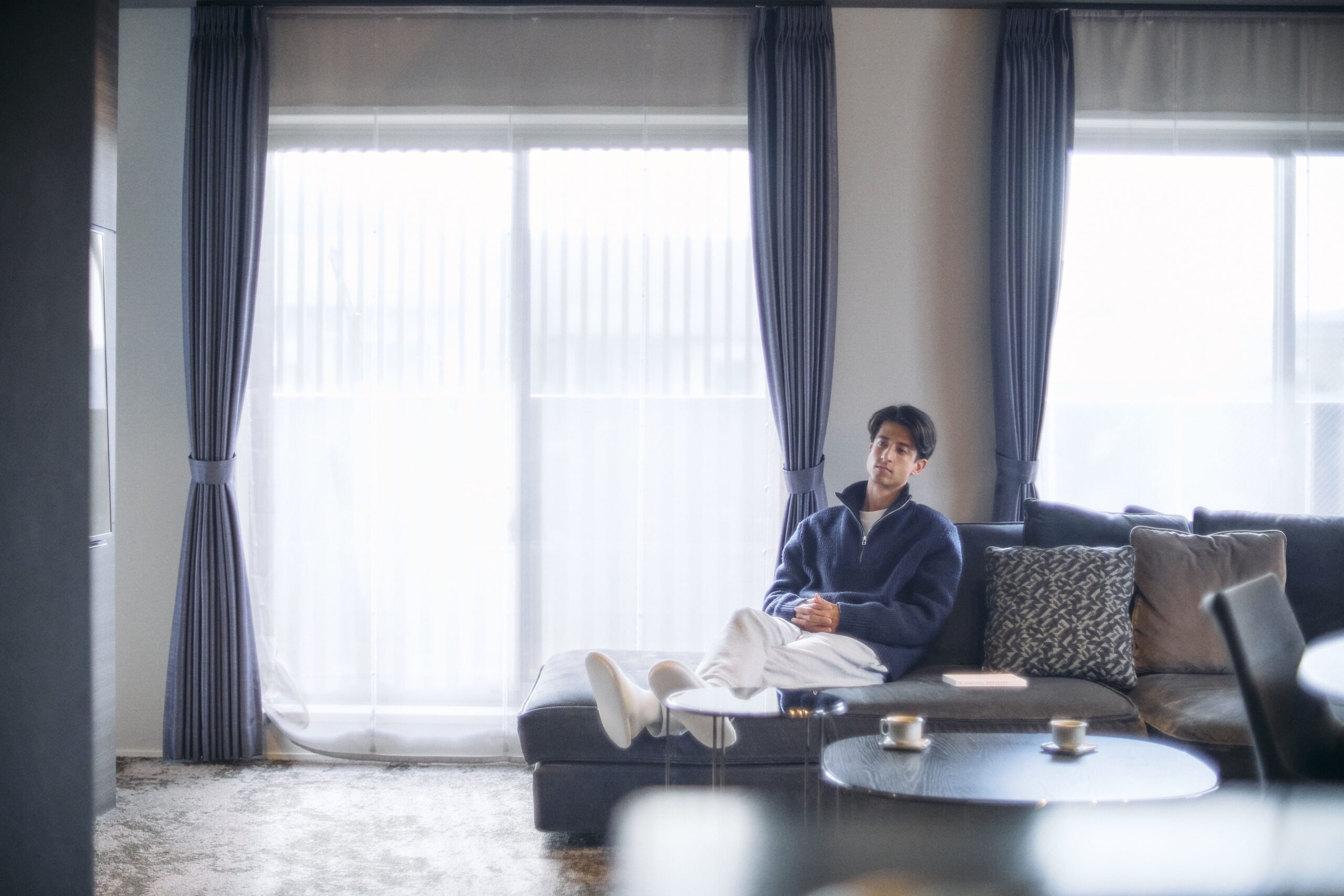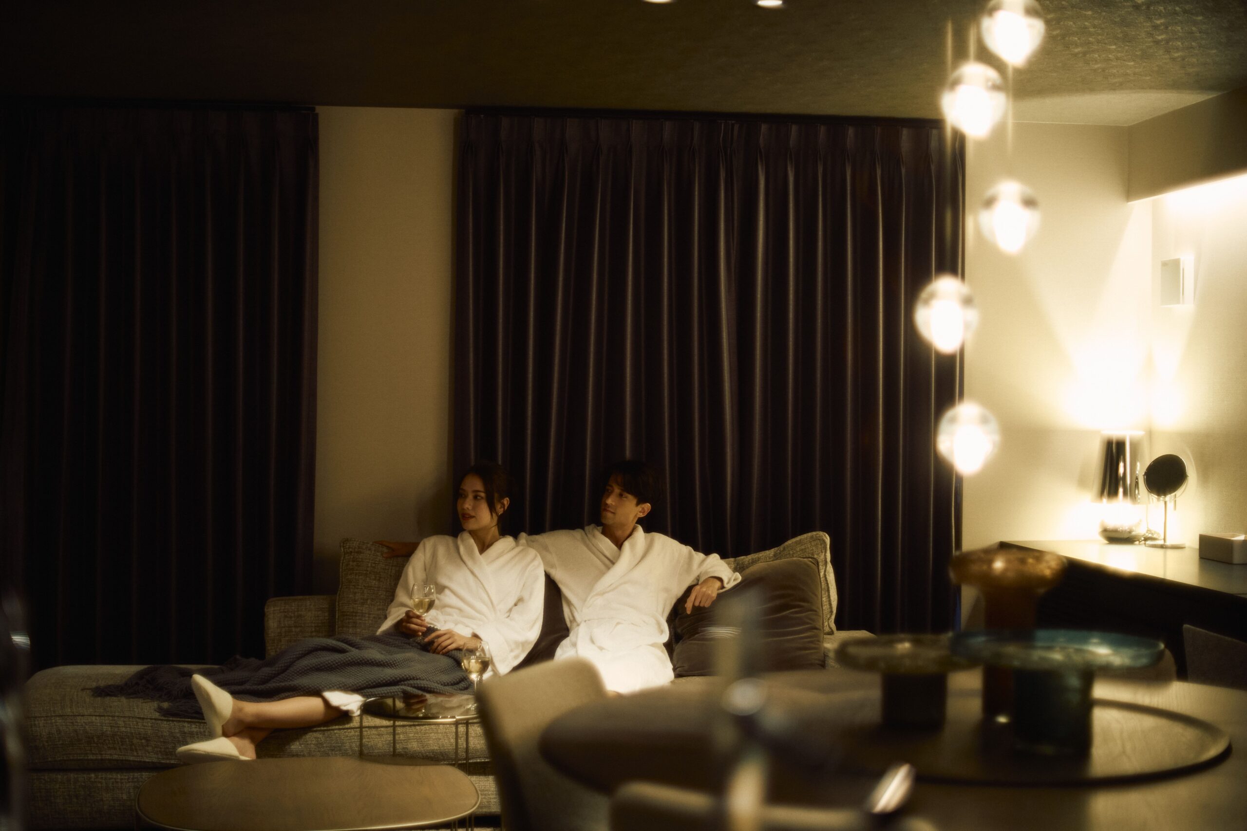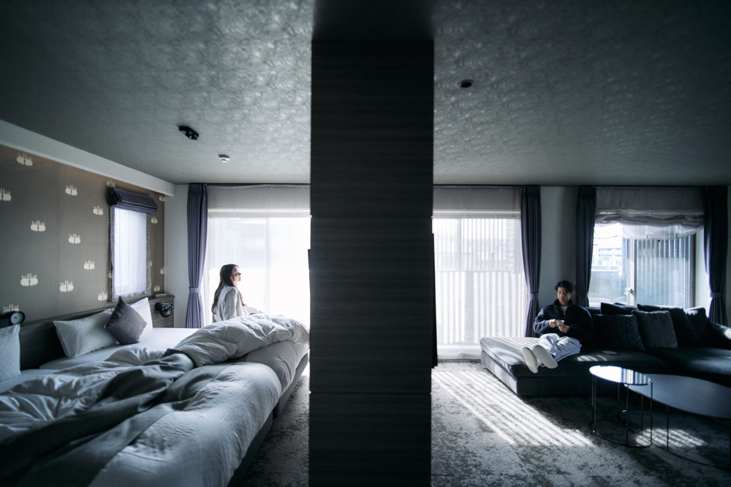 壁の厚み、光の⾊温度、⾹り、歩く⾜⾳、 すべてが「切り替え」を静かに後押しするように。