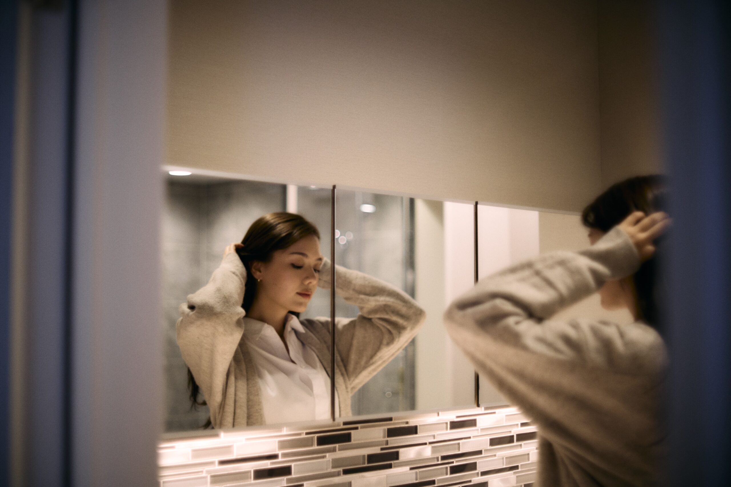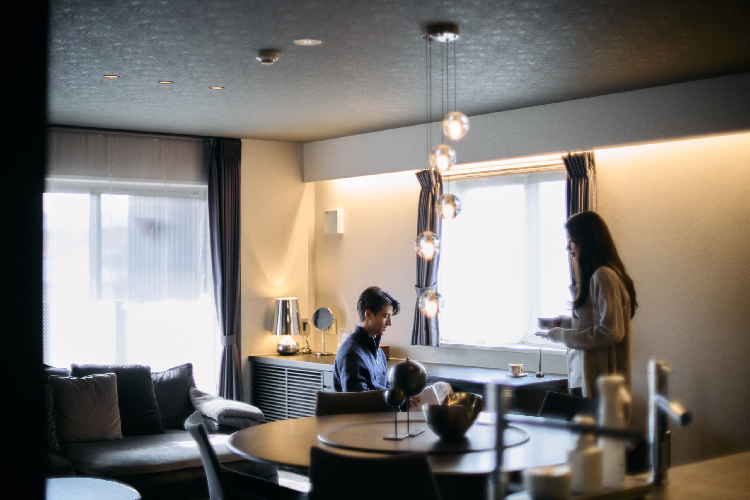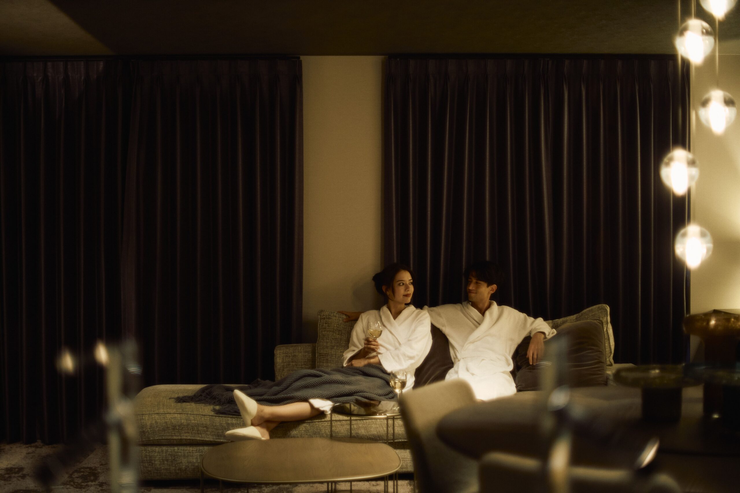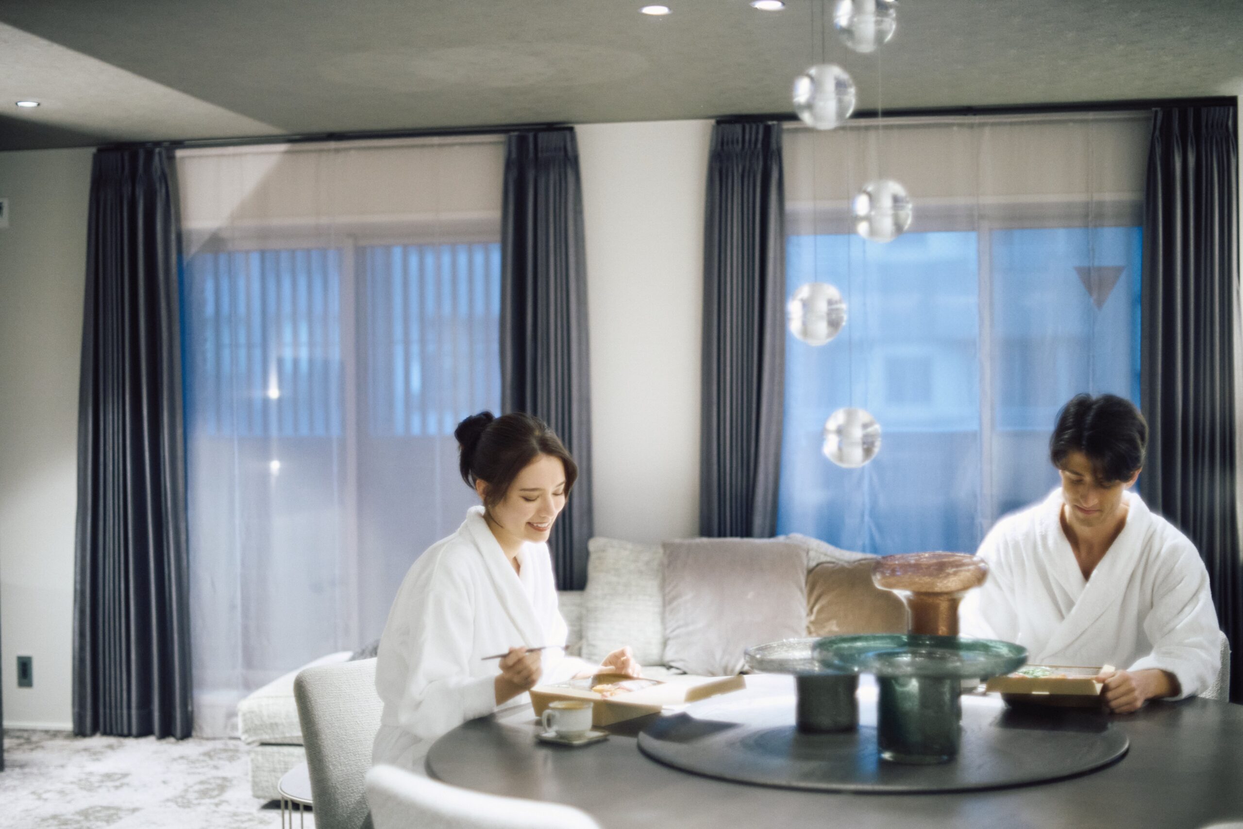 壁の厚み、光の⾊温度、⾹り、歩く⾜⾳、 すべてが「切り替え」を静かに後押しするように。