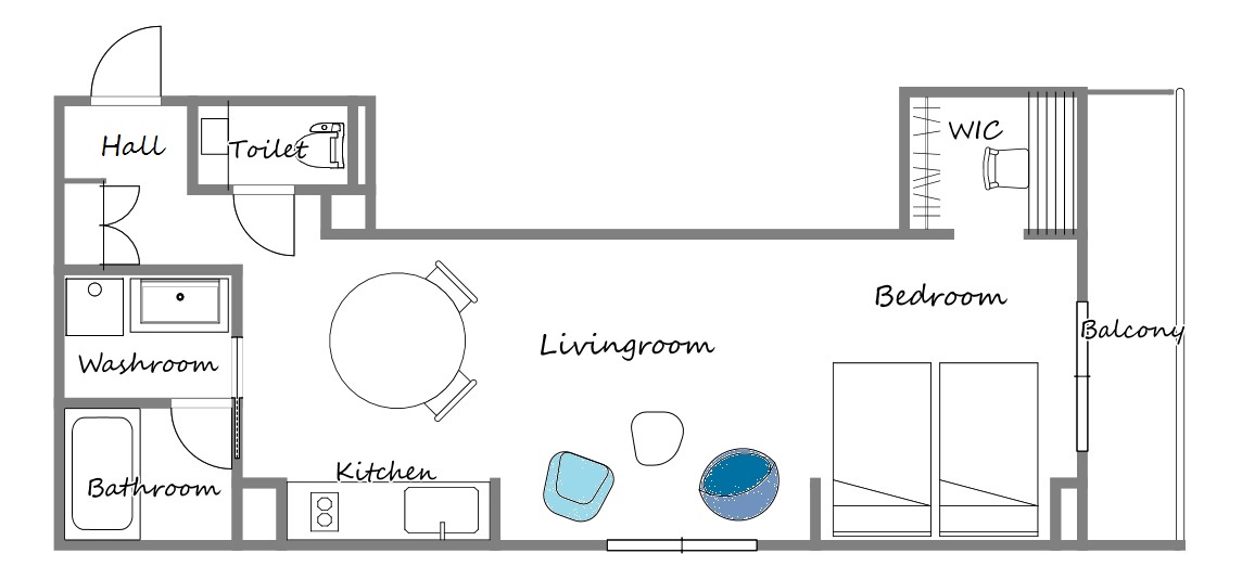Luxury Twin Room "AO"(Blue) with Hanging Chair