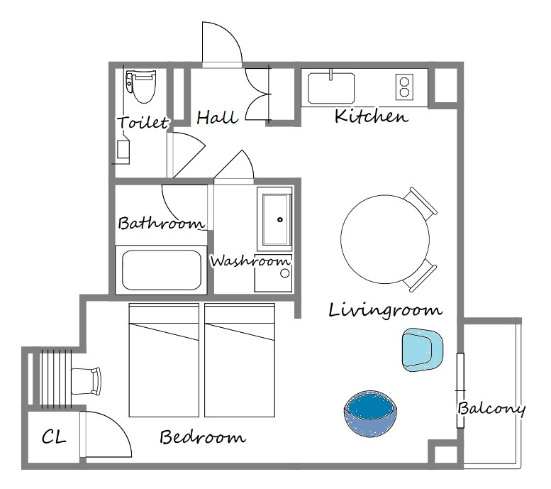 With its calming blue-toned décor, it offers a space to unwind and savour leisurely moments.